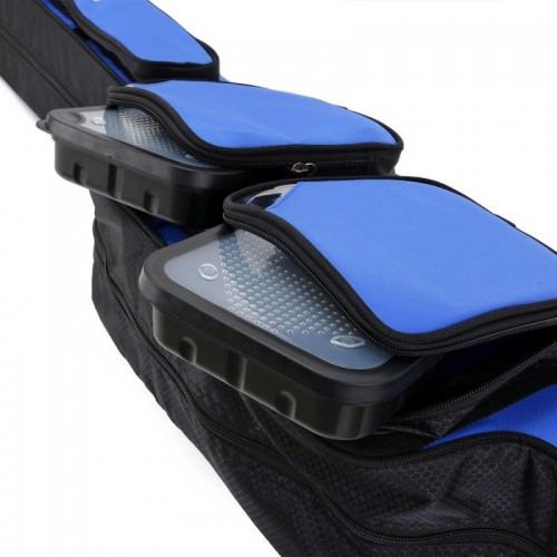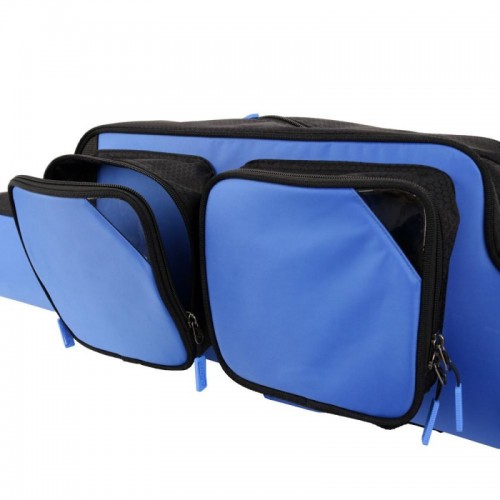 У чехла есть увеличенный боковой карман для запасных вершинок длиной до 70 см и дополнительный карман для зонта. Два боковых кармана меньшего размера подойдут для коробок с рыболовными снастями и других мелочей.