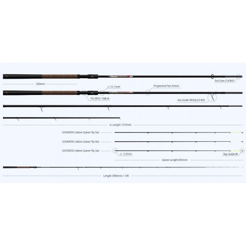 ZEMEX Razer Method Feeder 13ft – 140g Удилище класса heavy с тестом 140g. Вес фидера 276g при длине 3.90m. Это трехчастная модель с комплектом карбоновых квивертипов: 3,4 и 5oz с посадочным диаметром 3.5mm. В сет направляющих фидера входит 9 колец, первое из которых #30. Транспортировочная длина 137cm. Диапазон комфортных тестов оснасток для этой модели 60-100g, FLAT - Method 60-80g. Крейсерская дистанция ловли 60 - 70m, а при хорошей технике заброса снастью FLAT - Method может превышать 100 метров. Мощное сбалансированное удилище, предназначенное для ловли крупной рыбы и сверхдальних забросов. Прогрессивно - быстрый строй бланка позволяет осуществлять точный заброс даже в ветреную погоду. Может с успехом применяться при ловле карпов и амуров на коммерческих водоемах, а также при ловле леща за крутыми бровками на реках с умеренным течением. Кольца на квивертипах увеличенного диаметра, что позволяет применять различные шок - лидеры, а также делает комфортной ловлю в зимний период. ZEMEX Razer Method Feeder 13ft – 140g – это надежный инструмент спортивного класса, позволяющий комфортно ловить крупную рыбу при самых разнообразных условиях.