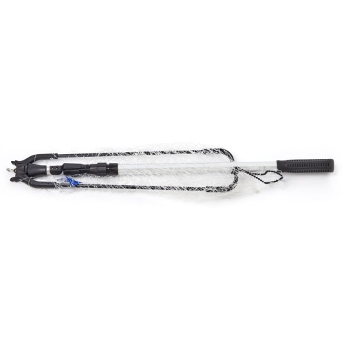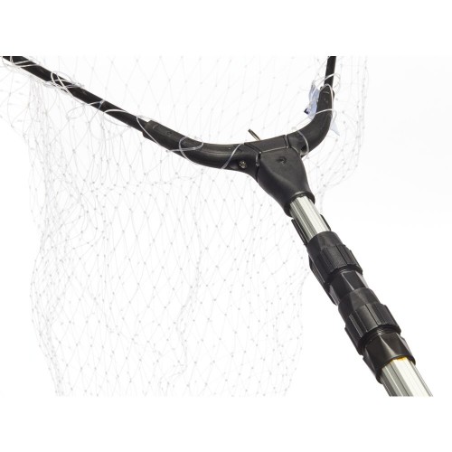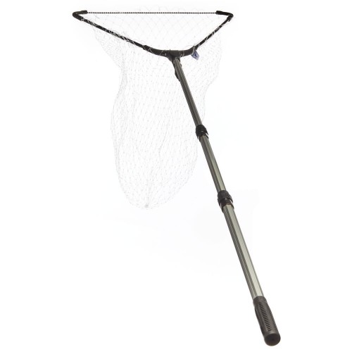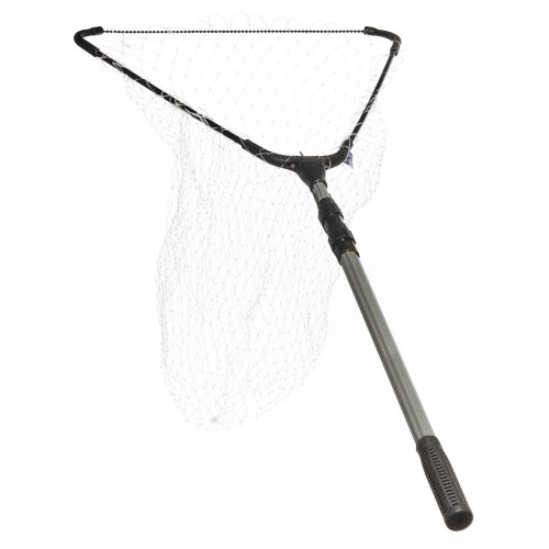 Длинный складной подсачек с треугольной формой сачка с сеткой из лески, оборудованный телескопической рукояткой.