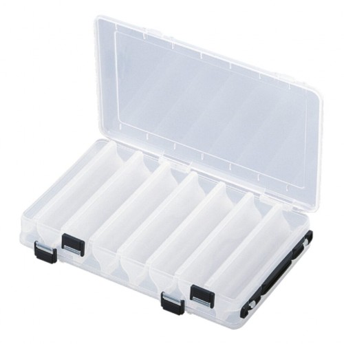Эта модель – пример максимального умения минимизировать пространство. Коробка двусторонняя, то есть ее можно открыть либо с одной, либо с другой стороны. Вид пластика, использованного для этой модели – специальный. Во-первых, он особо прочный, потому что изначально эта коробка используются для хранения приманок, которые в Японии используются при морской ловле, а отрицательное влияние морской воды хорошо известно. Во-вторых, свойства этого пластика таковы, что он гарантирует, что Ваши самые ценные воблеры, «лежа» в «лунках», не будут повреждены. Прорези позволяют пропускать влагу, что способствует «проветриванию» приманок, даже если Вы сложили их в коробки влажными.
